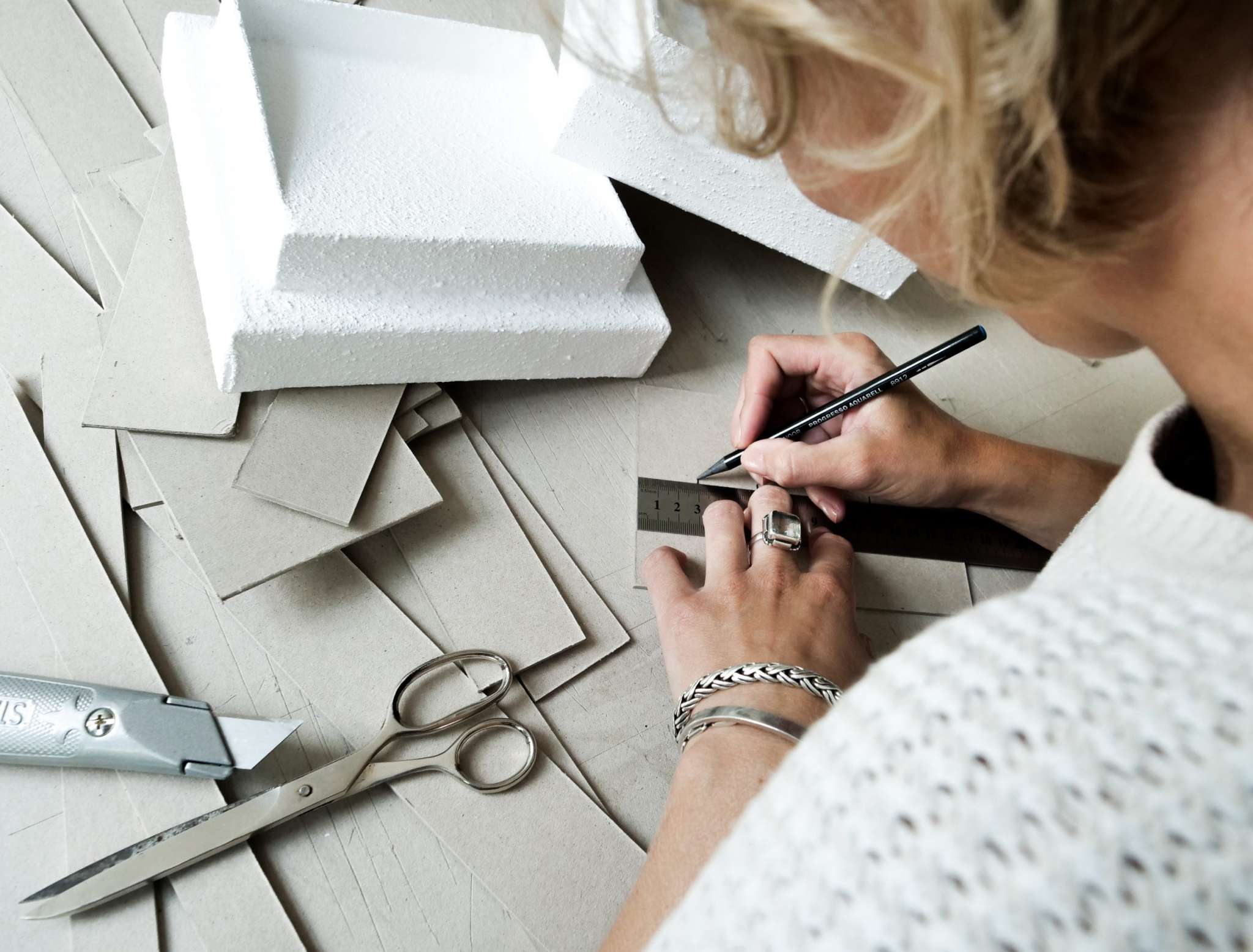 Geïnspireerd door het werk van kunstenaar Jan Schoonhoven en vanuit mijn fascinatie voor architectonische constructies in combinatie met het spel van licht in een ruimte maak ik de wandsculpturen. Ruimtelijke schilderijen die letterlijk spelen met het licht. Mijn herinnering aan architectonische constructies laat ik spreken door een combinatie te maken van bestaande constructies uit de tastbare werkelijkheid en mijn eigen fantasie.