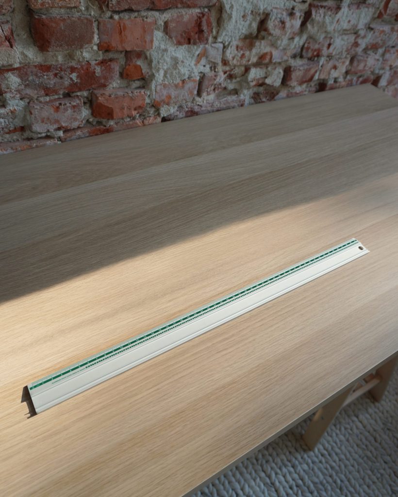 Daarnaast bevat de liniaal in het midden een verzonken strook om de vingers tijdens het snijden te beschermen.