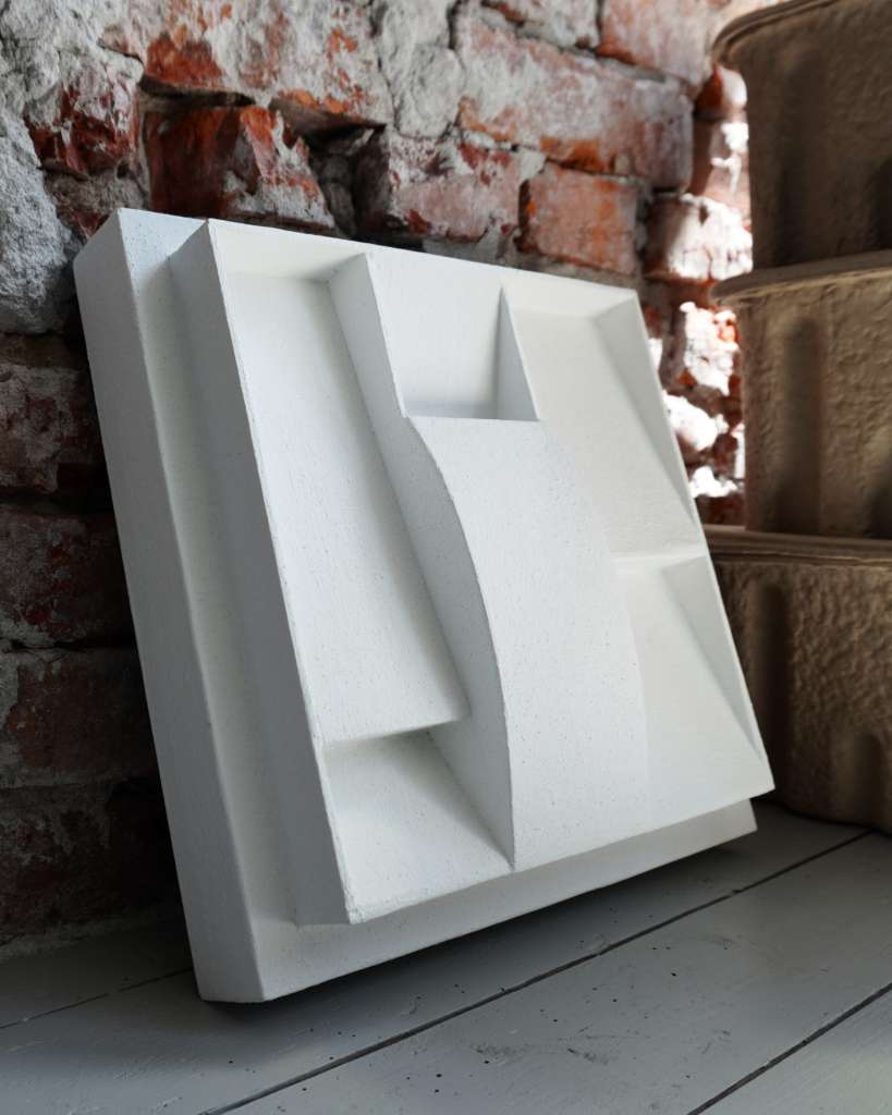 Geïnspireerd door het werk van kunstenaar Jan Schoonhoven en vanuit mijn fascinatie voor architectonische constructies in combinatie met het spel van licht in een ruimte maak ik de wandsculpturen. Ruimtelijke schilderijen die letterlijk spelen met het licht. Mijn herinnering aan architectonische constructies laat ik spreken door een combinatie te maken van bestaande constructies uit de tastbare werkelijkheid en mijn eigen fantasie.