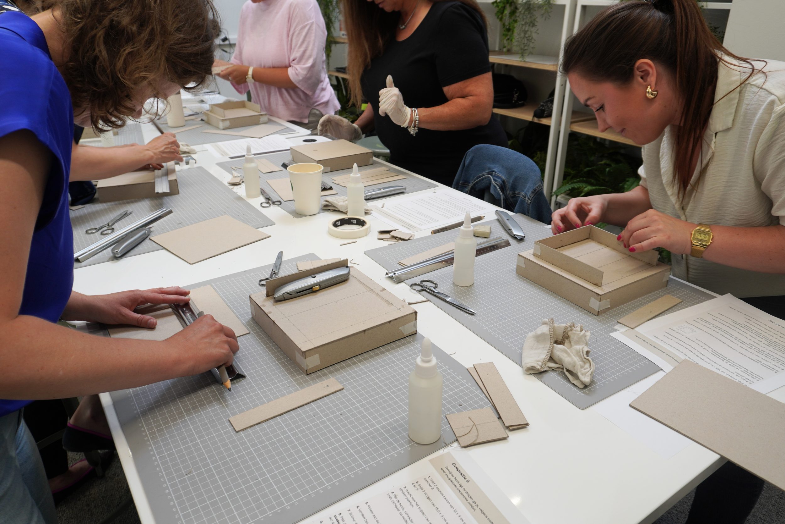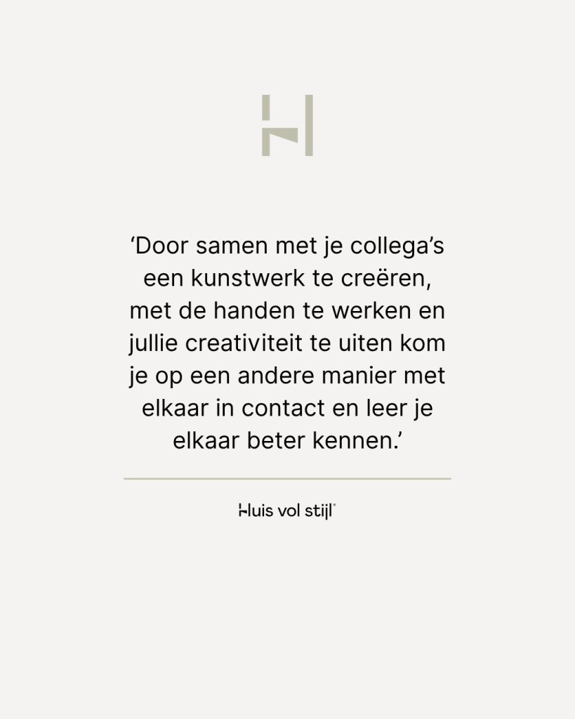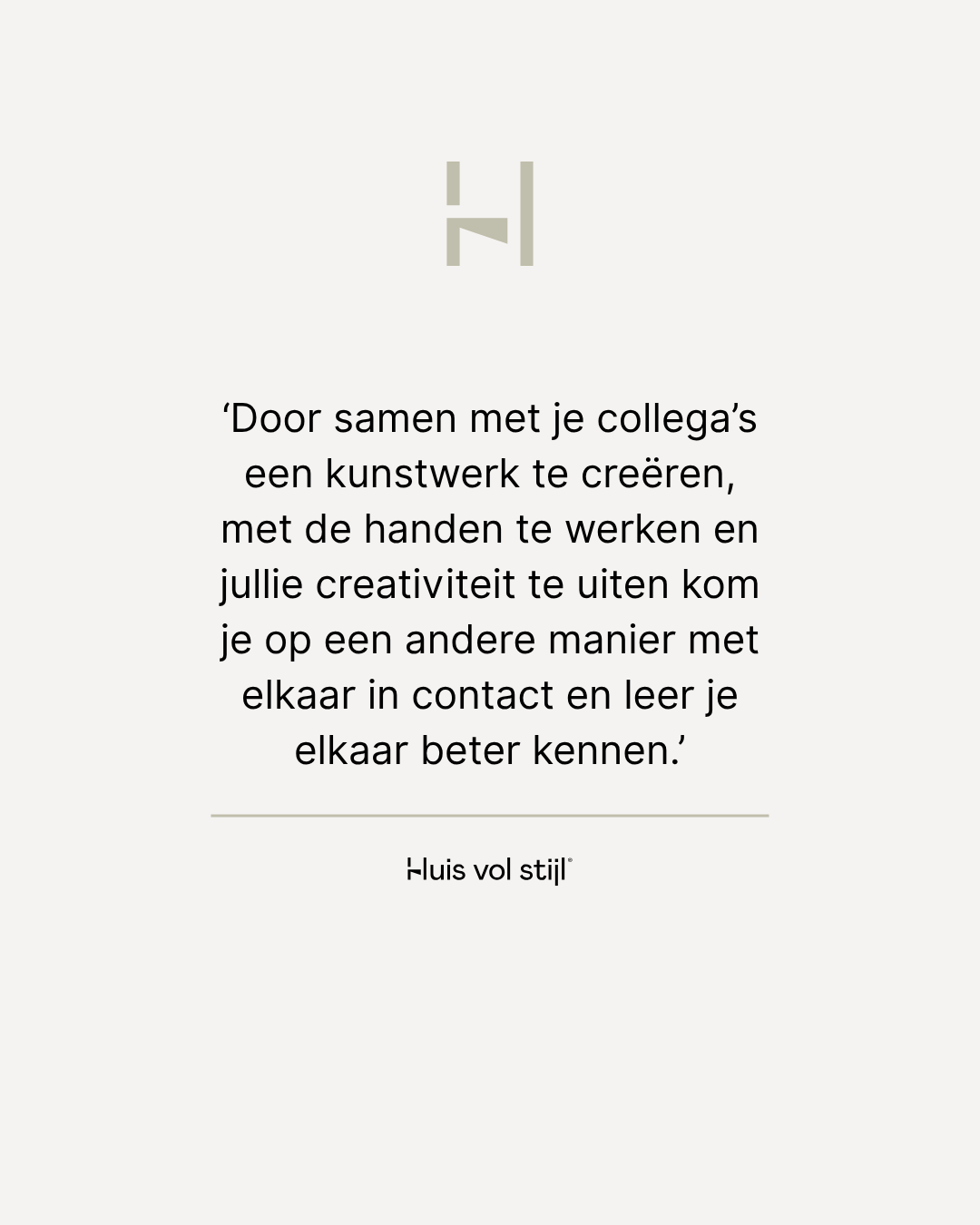 Aan de kant met die laptops, even geen vergaderingen maar werken met je handen. 3 uur lang gaan jullie aan de slag met: karton, lijm en verf. - Samenwerken aan een kunstwerk: